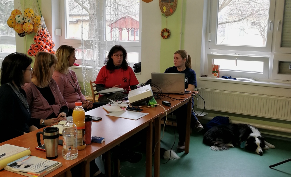 Négylábú tanársegédek- a kutyás terápia módszertana és gyakorlata címmel tartottuk meg első képzésünket, amiben hangsúly a gyakorlaton volt. Terápiás kutyáink bevonásával, saját élményt kaptak a résztvevők a foglalkozások feladattípusait kipróbálva, tervezési szempontjait elsajátítva. Jó hangulatú, tartalmas tanfolyamunkat ősszel és tavasszal tervezzük szervezni, amire várjuk az érdeklődő kollégákat és terápiás kutyafelvezetőket!